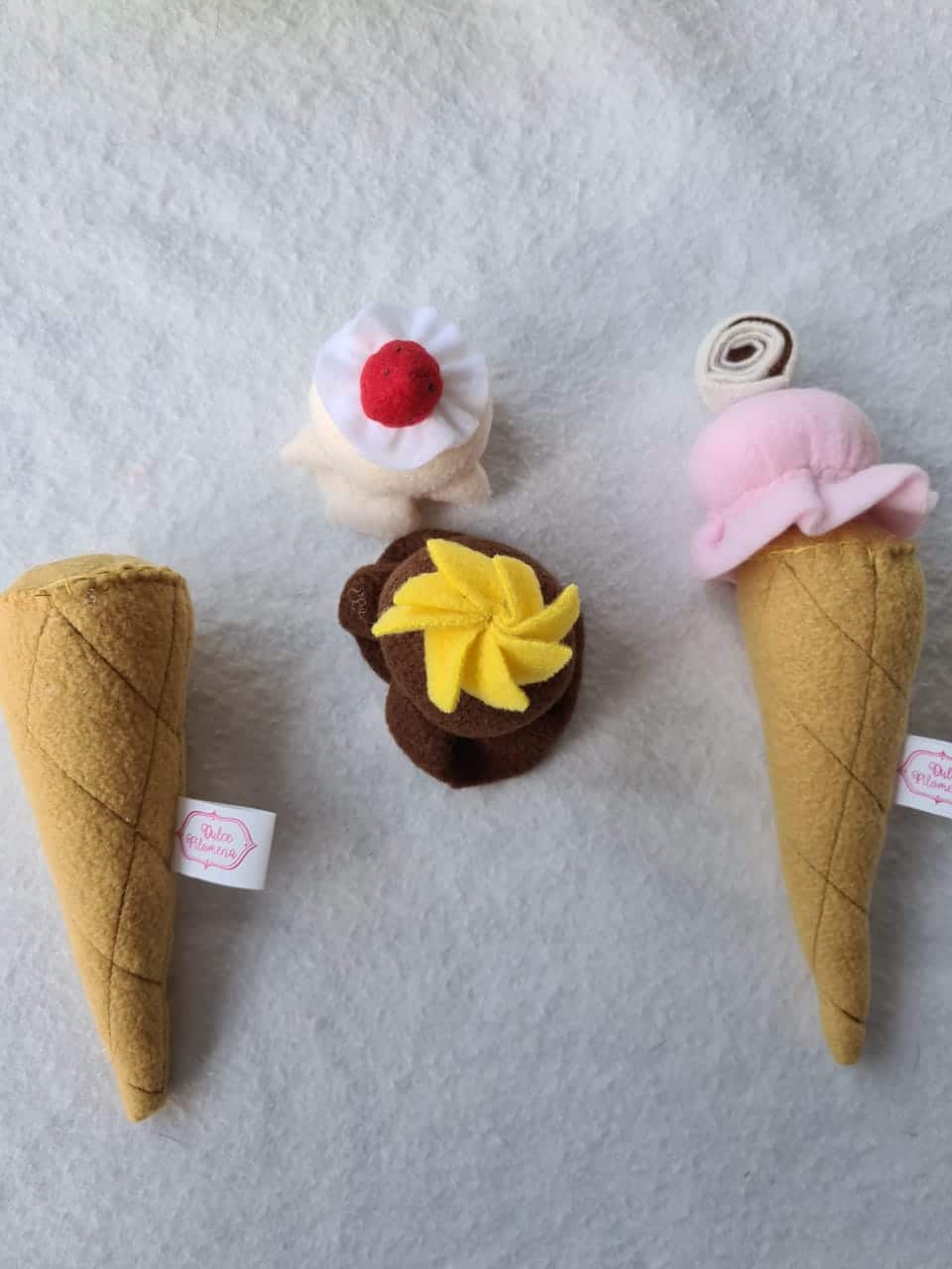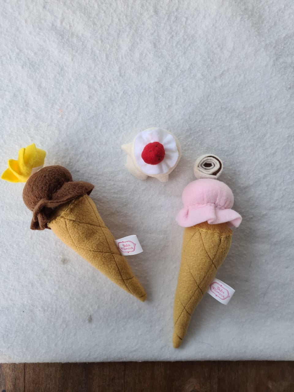 Incluye 2 Cucuruchos 3 bochas de helado 3 decoracion.