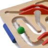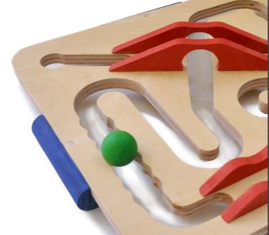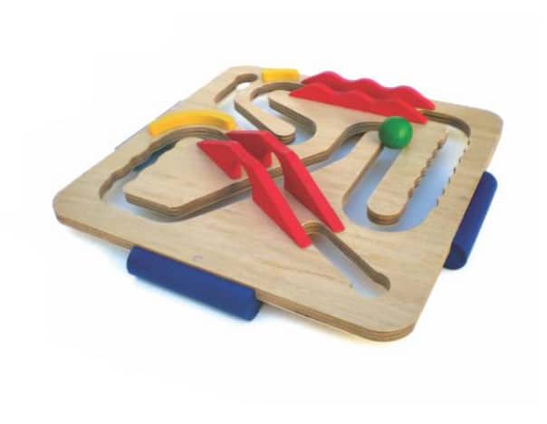 Juego de habilidad que consiste en desplazar la bola por la ranura y llevarla de un extremo al otro del recorrido. Deben sortearse los obstáculos y las irregularidades del recorrido, moviendo la placa para que la bola se mueva por la acción de la gravedad.