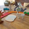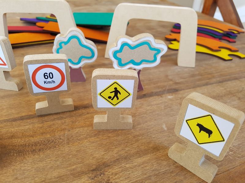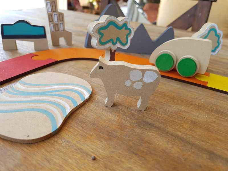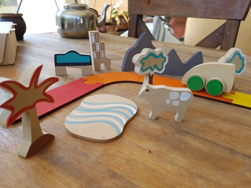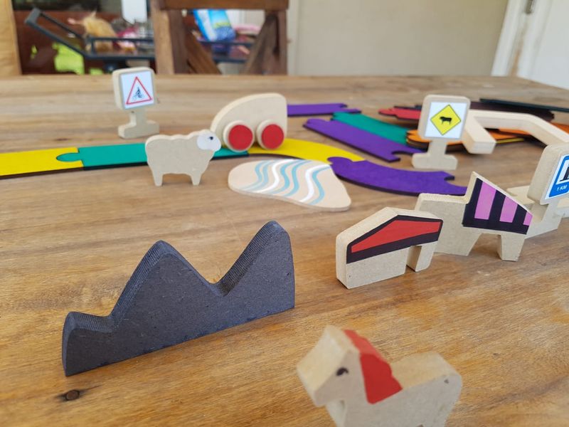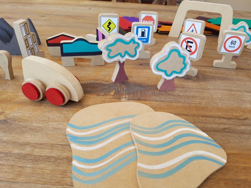 lagos, casas, puentes y señales de tránsito. Mide más de 4 m.!!!. 3 años. Caja de cartón.