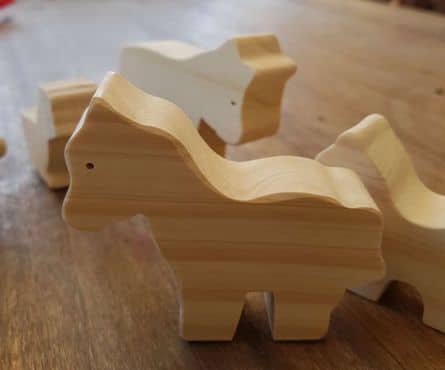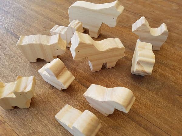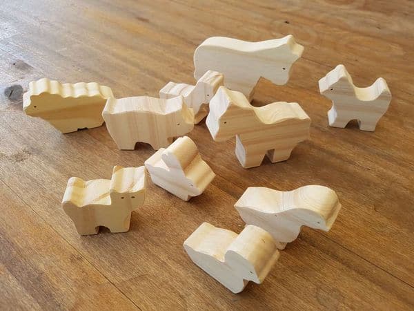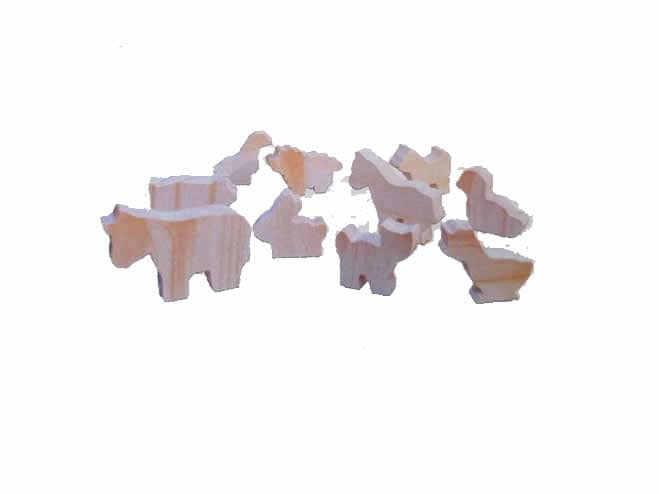 Set de 10 animales de granja de Pino, perfectamente Lijados.